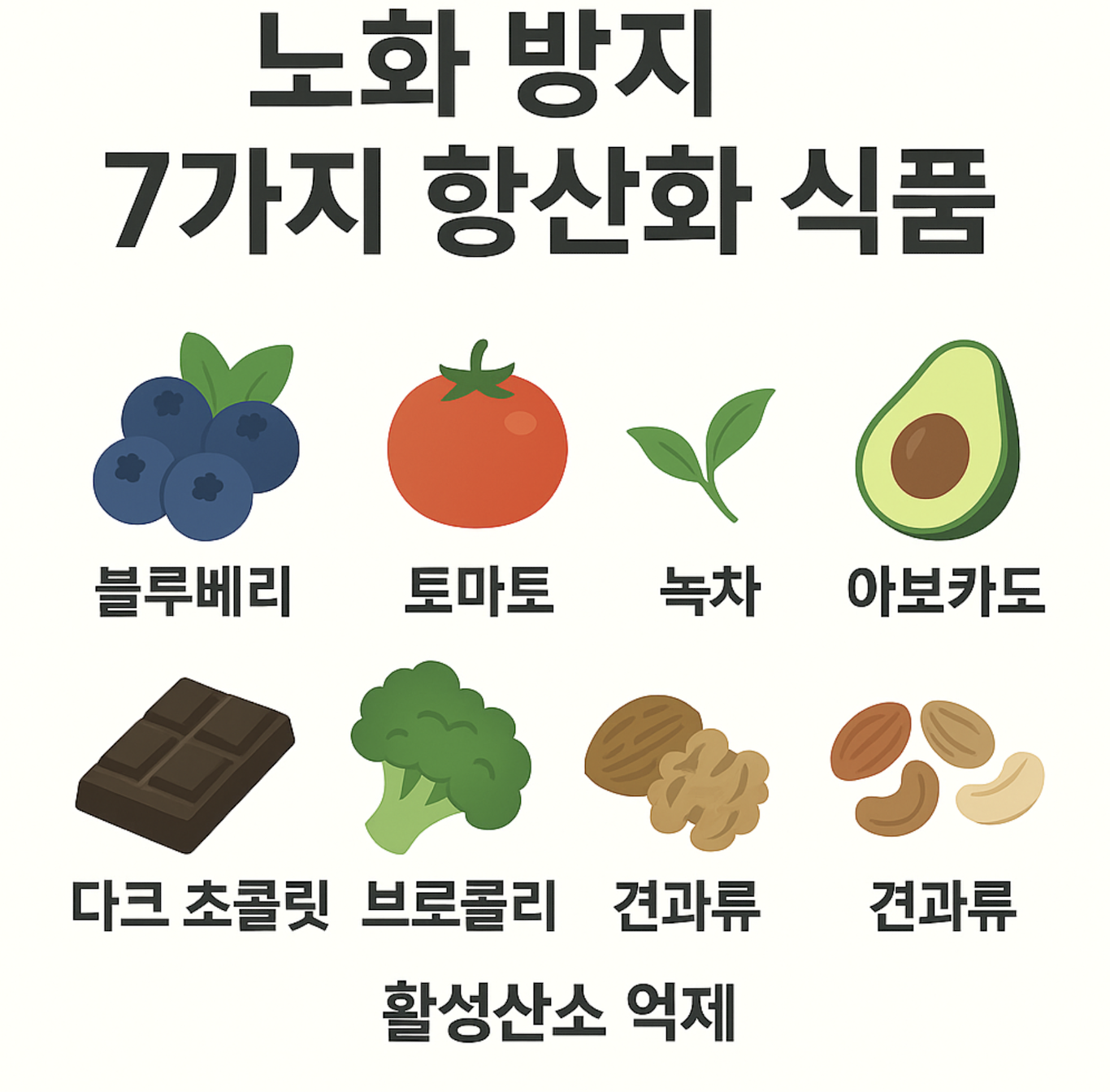 노화는 갑자기 오는 것이 아니라 습관의 결과입니다. 오늘부터 항산화 식단을 실천해 보세요.
